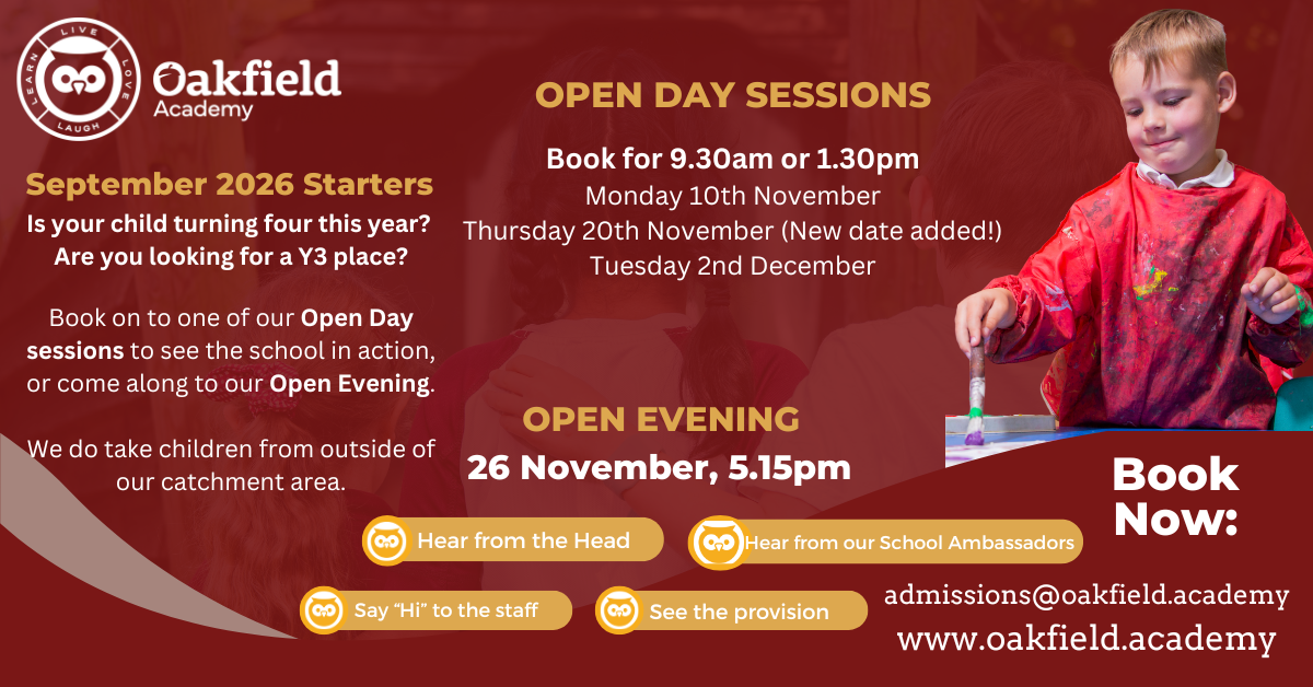 In accordance with the School Admissions Code, Oakfield Academy is consulting on its proposed admission arrangements for the 2026/27 intake.